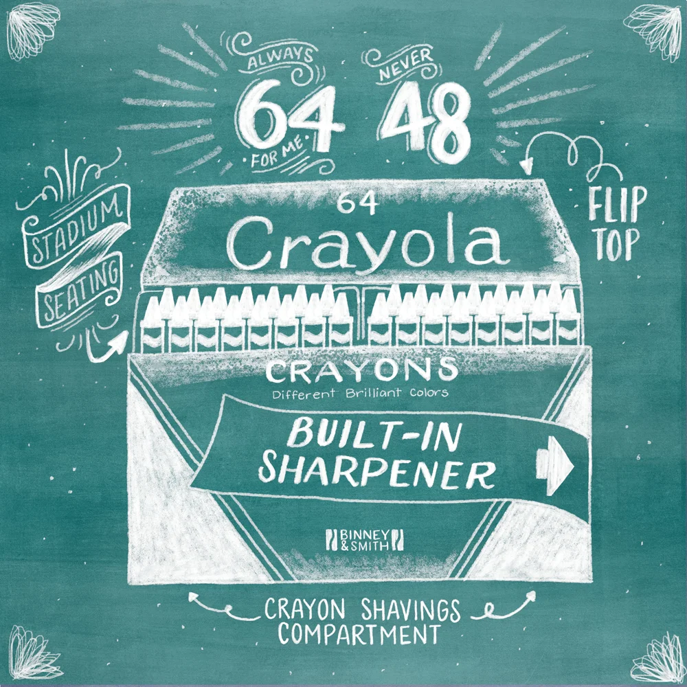 For me this box of crayons right here was the perfect tool in school and a must have. Every year I got a box of these and sometimes I would get a box for Christmas. It was just perfect with its narrow build for easy grip, flip-top lid, stadium seating for all my crayons so adding the Built-In Sharpener was just, well, Mind Blowing!!